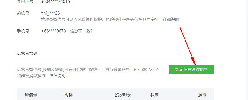 5.進(jìn)入后,單擊選擇綁定運(yùn)營者微信號