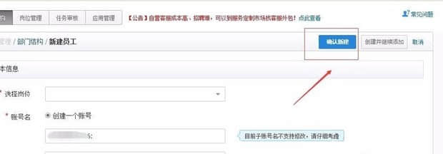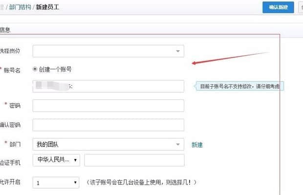 - 進入子賬號中心,選擇“新建員工” 選擇之后,這里會有一個二次驗證;